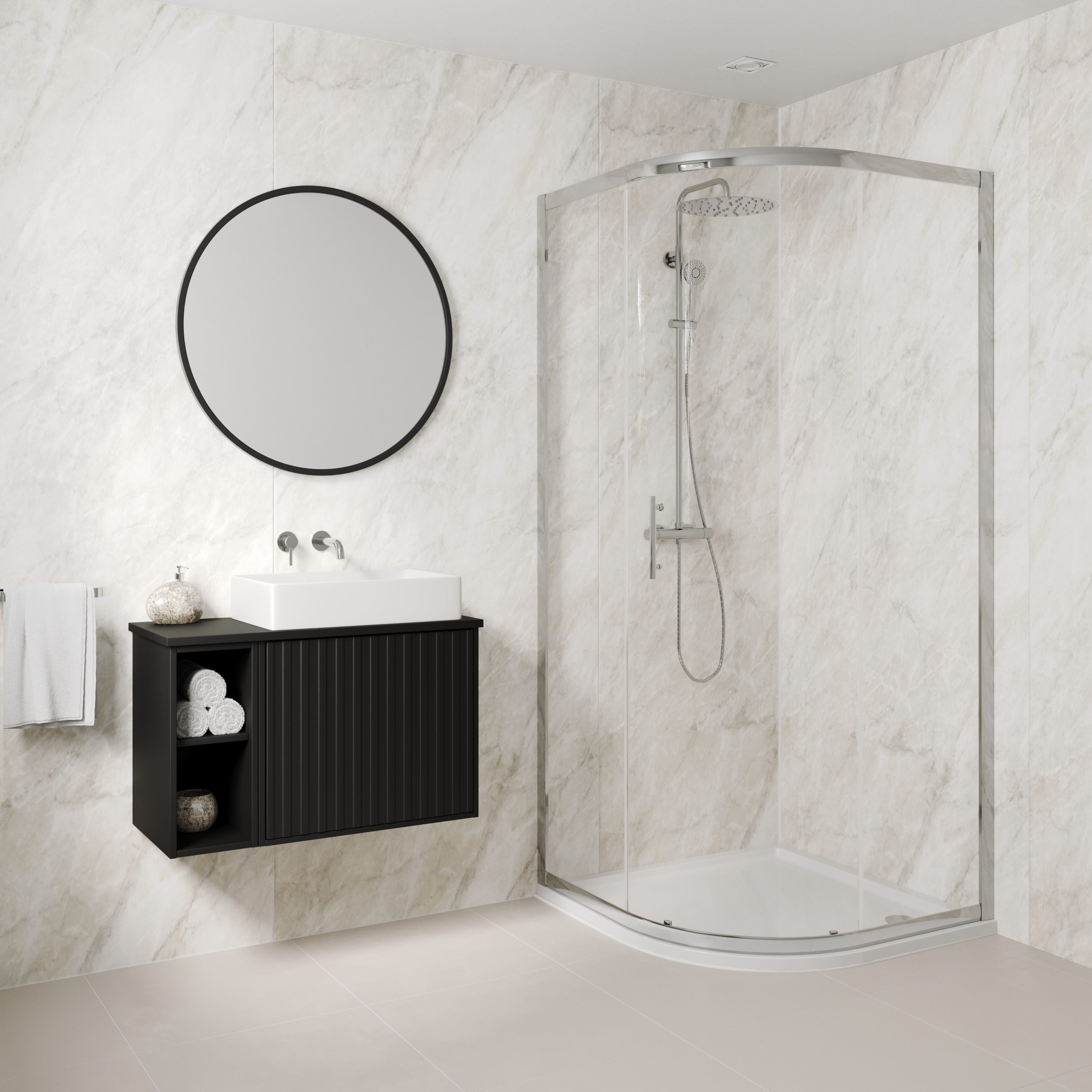 Showerwall also has a range of laminate wall panels which are available at Tap Warehouse. These panels offer realistic textures such as concrete and marble so designs are very chic and luxurious in appeal.