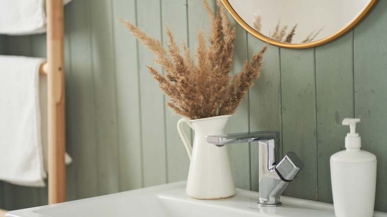 Many people choose to incorporate green into their bathrooms with tiles, and there are an array of different tile finishes to choose from. Feature walls, tiled splashbacks and half wall tiles are a great idea if you’re not sure where to start. Some shades of green can make your bathroom appear too dark, so it’s a great idea to complement this colour with whites and woods to ensure your space remains vibrant and warm.