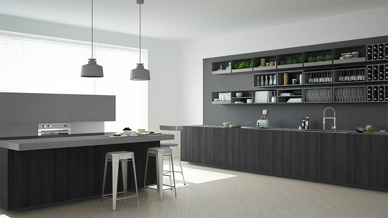 It might not be the first material that springs to mind when you think of redesigning your home, but concrete is becoming increasingly popular in kitchens and bathrooms. Concrete is a great way to add some extra textures to your grey kitchen and is guaranteed to wow any visitors.