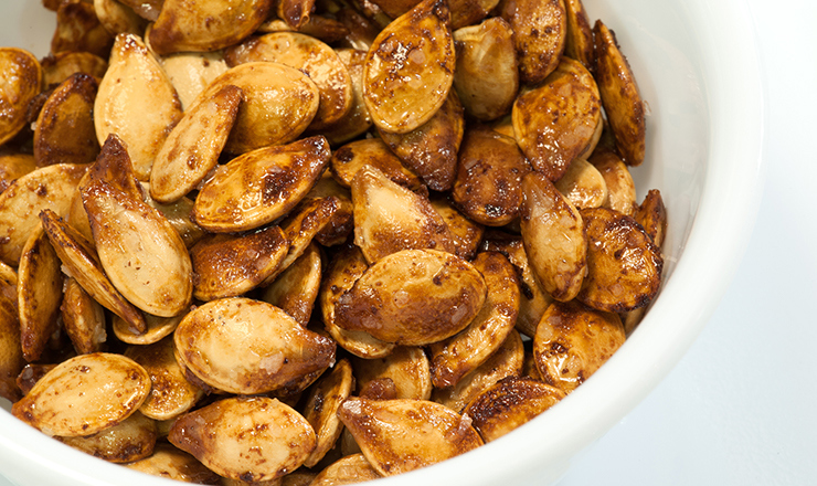 Remove the seeds from within your pumpkin , (an ice-cream scoop is great for this) and wash the seeds to remove any pulp. Dry them thoroughly.