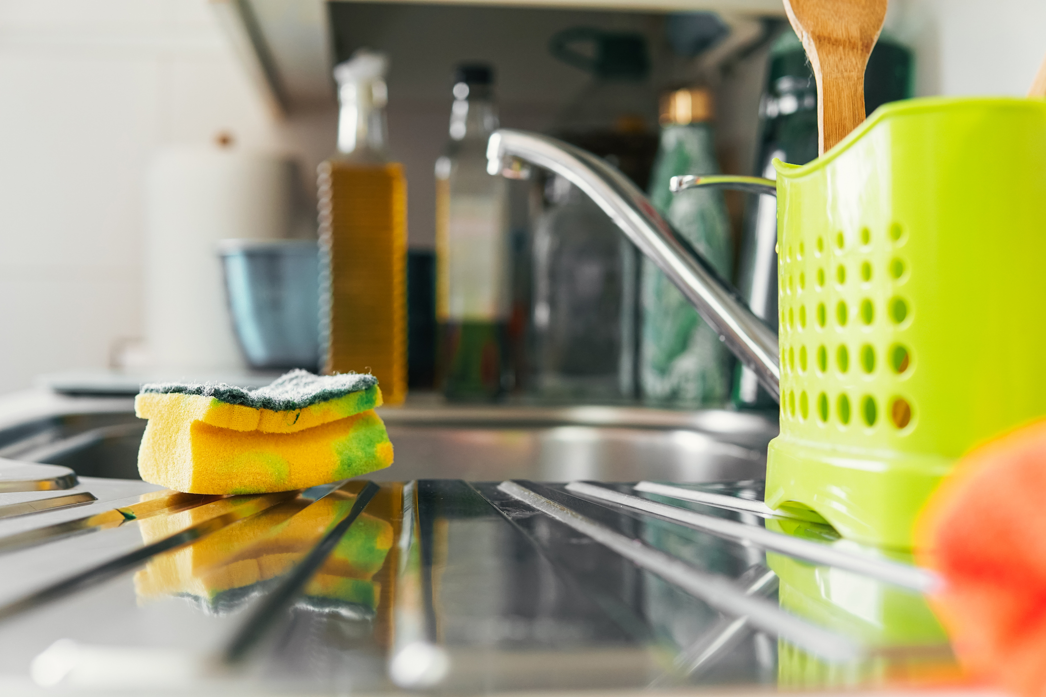 - Clean your sponge weekly in the dishwasher or washing machine