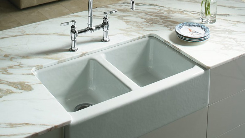 Our next contender today is the Rangemaster double Belfast ceramic sink; this stunning classic is crafted from high-grade fireclay ceramic material making it impervious to knocks and bumps.