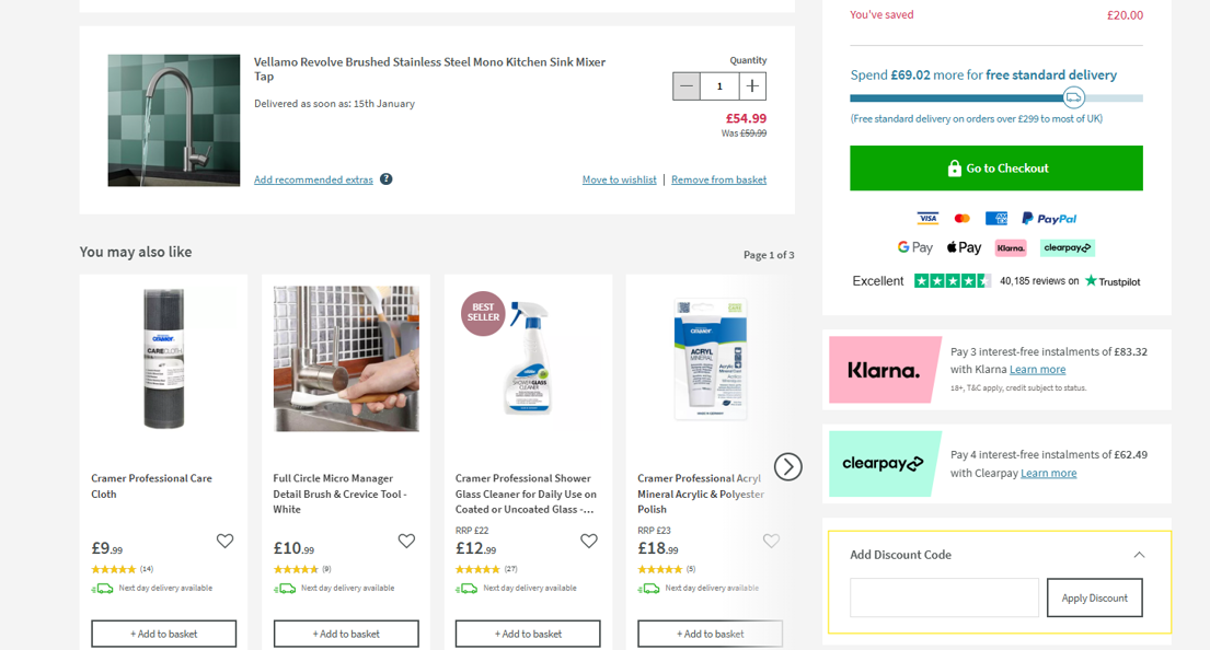 Discount codes can be entered on the basket page before you proceed to the checkout.
